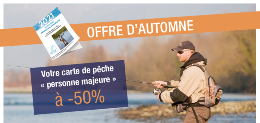 La carte de pêche Offre d’automne « Personne majeure » est reconduite à partir du 1er septembre 2021.